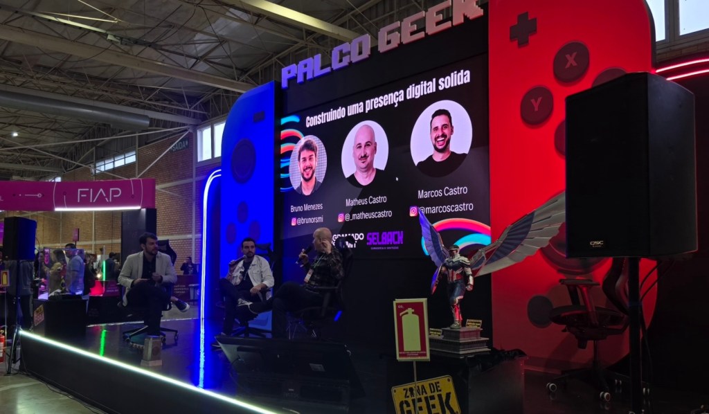 Outra grande atração do segundo dia foi a presença dos Castro Brothers, Marcos e Matheus. Eles vieram contar a trajetória de consolidação da sua presença online ao longo dos anos e como essa experiência pode ajudar outras pessoas a criar marcas que se destaquem e permaneçam relevantes com o tempo.